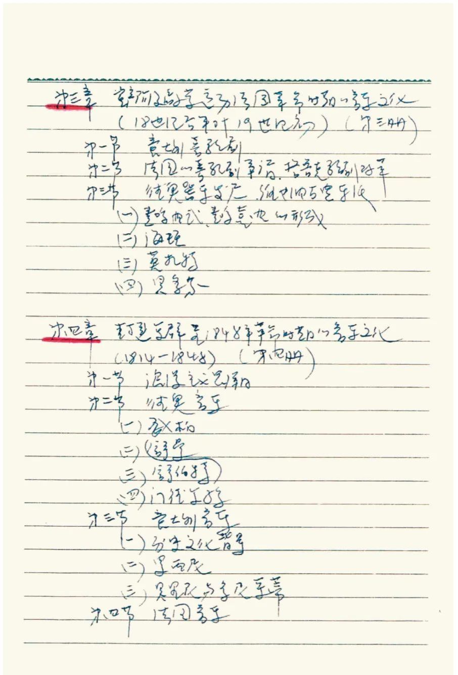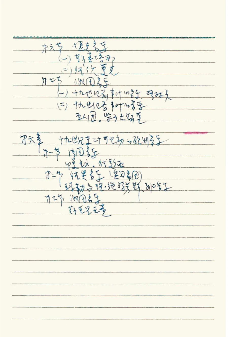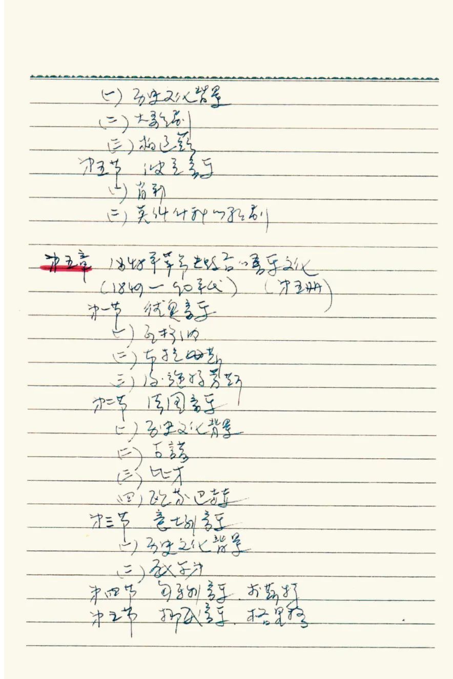 于润洋先生手写《西方音乐史》教学目录