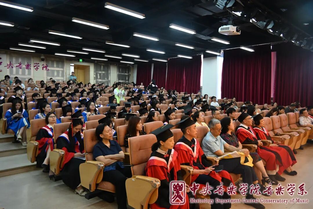 党总支书记吴晓萍教授以83年前胡适赠予北大毕业生的智慧箴言为引,为学子熔铸三剂人生锦囊。首先,音乐学人的终生使命当以问题意识锚定学术航向——从音符裂隙中聆听历史叩问,成为永不枯竭的真理追随者;其次,当职业与志趣未契时,需以业余兴趣丰盈生命维度,让热爱的清泉滋养灵魂厚度;同时,纵遇风雨荆棘,更要深信功不唐捐,今日埋下的种子终将在未来时空绽放繁花。吴书记的寄语如钟磬鸣响:"此去山高水长,央音永远是归途的守夜灯!愿你们如仲夏骄阳——以滚烫赤忱照亮征途,弦歌不绝直抵星穹!"