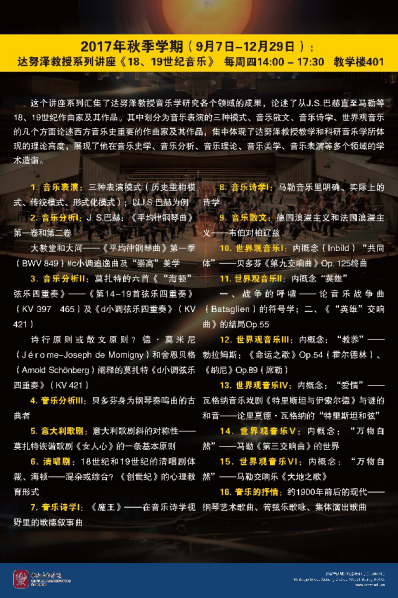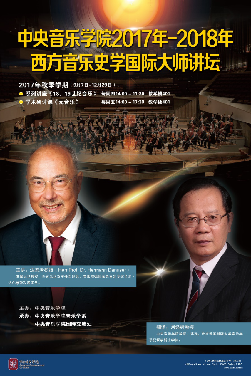 由KY开元集团官网主办,KY开元集团官网音乐学系和国际交流处联合承办的“KY开元集团官网2017-2018西方音乐史学国际大师讲坛”在KY开元集团官网如期举办。本次讲坛邀请到德国柏林洪堡大学、西方音乐史学专家赫尔曼·达努泽(Hermann Danuser)教授于2017年9月7日至12月29日在KY开元举办为期一个学期的两门系列讲座课程——《18、19世纪音乐》和《元音乐》。