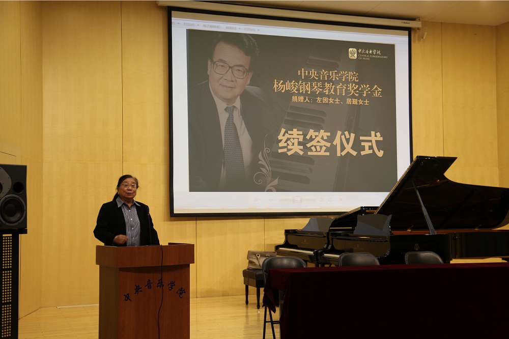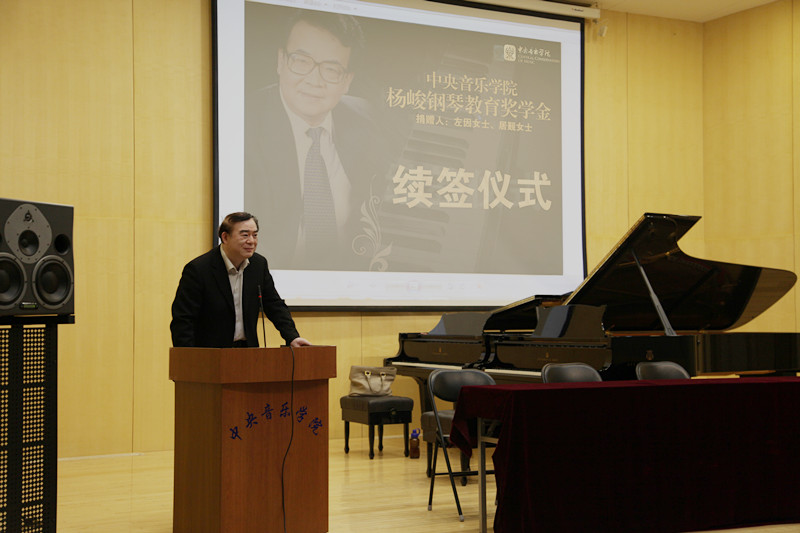 俞峰院长在讲话中表示非常支持该项奖学金的设立,他指出:“杨峻钢琴教育奖学金”有特殊的意义。一方面,它表达了我们对杨峻教授的怀念,同时也别有创意。它奖励学生追求进步,这对学生的成长会起到很好的激励作用。我们的学院和各学科都有着优良的传统,我们应以不同的形式来纪念我们的前辈,使优良的传统得以延续发扬、薪火相传。感谢左因教授和居觐女士为此所作的努力与贡献。虽然奖学金数额不大,但它是纯粹的、不求回报的、鼓励学生进步的,是非常有意义的。