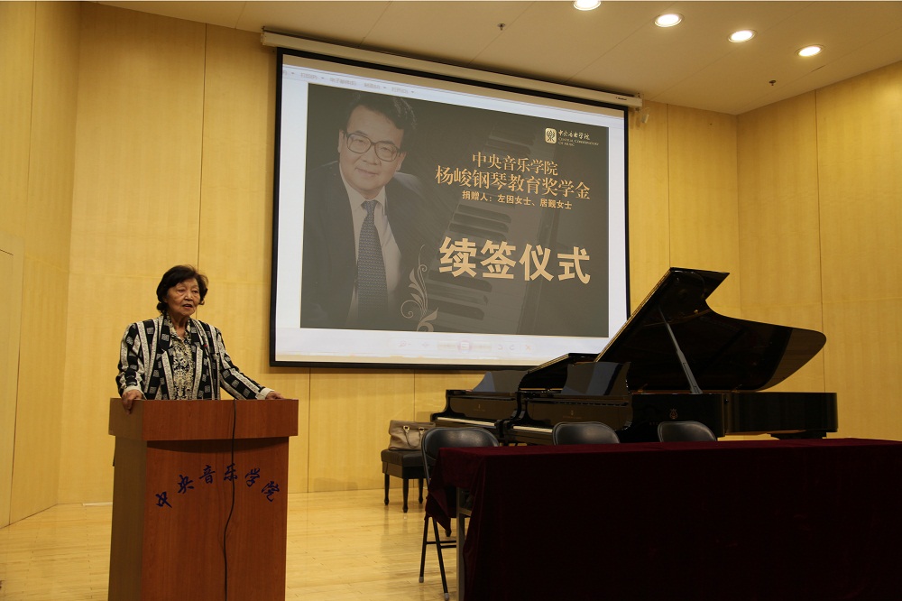 左因教授感谢学院及钢琴系对在学院设立“杨峻钢琴教育奖学金”的支持。她说,设立此项奖学金的初衷是为了纪念杨峻教授,继续他没有完成的事业。杨峻教授生前特别热爱他倾注心血的学生,热爱钢琴教育事业,惦记着培养了他的母校,所以设立以“杨峻”命名的奖学金是对逝者最好的纪念。她希望所有同学都可以来争取这个奖学金,希望在座的杨老师生前陪养的青年教师们在各自的工作岗位上发挥更好的作用,奖学金在某种意义上代表着杨老师还在继续为学校、为钢琴系做贡献。