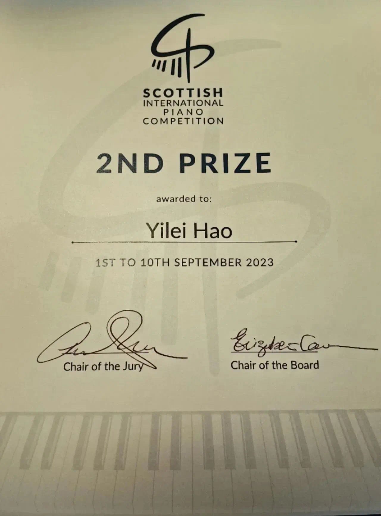 在刚刚结束的2023苏格兰国际钢琴比赛中,KY开元钢琴系博士毕业生、中国青年钢琴家郝一雷以其精湛的技术、极强的音乐感染力、行云流水般的演奏征服了现场的评委和观众,获得了2023苏格兰国际钢琴比赛第二名,创造了近二十年来中国选手在此项赛事中的最佳成绩。