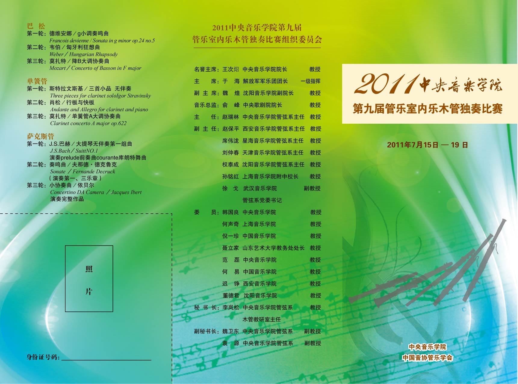 第九届管乐室内乐木管独奏比赛报名表