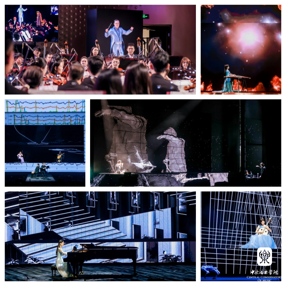 开幕式音乐会以音乐、人工智能与脑科学的跨界融合为特色的“未来音乐会”上演。音乐会的创作团队由作曲家、演奏家和工程师共同组成,涵盖了人工智能、脑机接口技术、表情情感识别、AI生成视觉、虚拟人等多种前沿技术形式。