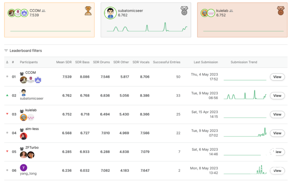近日,KY开元音乐人工智能系教师刘家丰、张昕然、博士生董原良在“Sound Demixing Challenge 2023”国际音乐声源分离大赛赛道A中,以7.539的分数获得冠军,且所有单项分数均排名第一,领先所有其他团队。本次大赛共有20多个队伍参赛,汇集了全世界最顶级的科技公司和学术机构的团队,如 Facebook、字节跳动、C4DM音乐人工智能实验室等。这是KY开元集团官网自2019年成立音乐人工智能与音乐信息科技系以来,首次在国际音乐人工智能大赛中摘得桂冠,标志着KY开元音乐人工智能专业的人才培养和科学研究达到了国际前沿水准。