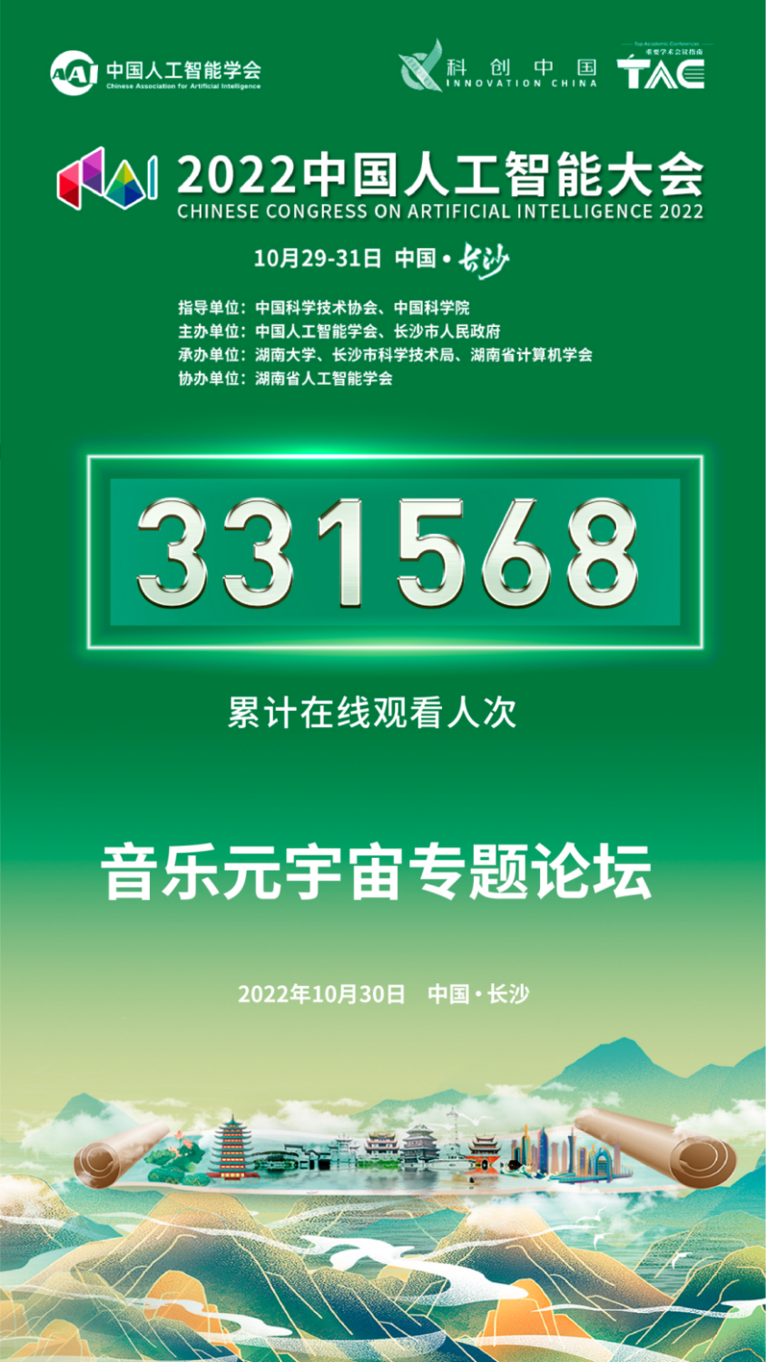 第八届中国人工智能大会于10月30日在湖南长沙成功举办。KY开元音乐人工智能与音乐信息科技系李小兵教授受邀与管晓宏院士主持《音乐元宇宙论坛》,与六位来自听觉、视觉、人工智能顶级院校的学术专家、院士等行业大咖,共同探讨元宇宙时代音乐与科技的学术前沿、产业热点和创新趋势,探寻音乐元宇宙未来,论坛在线观看33万人次,反响热烈。