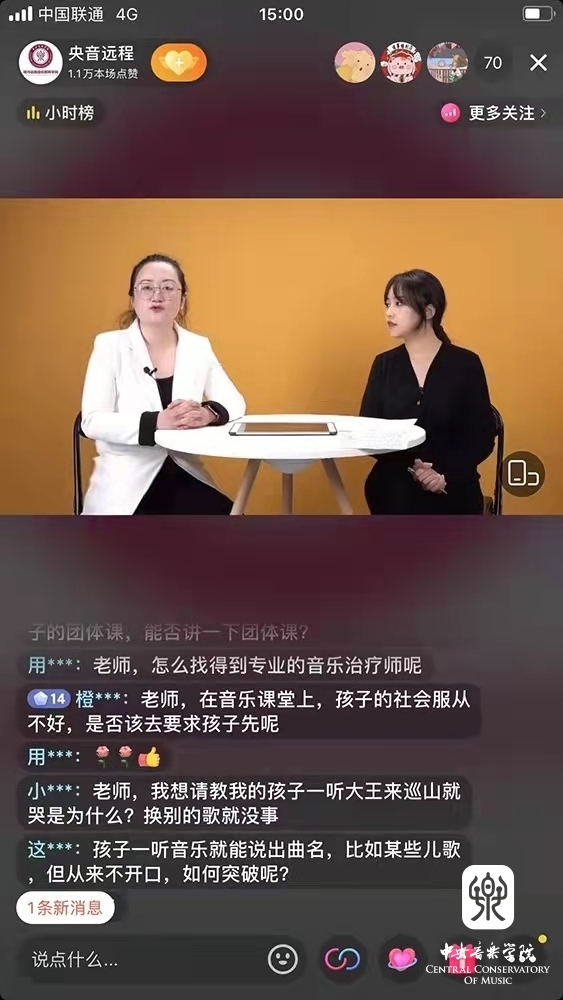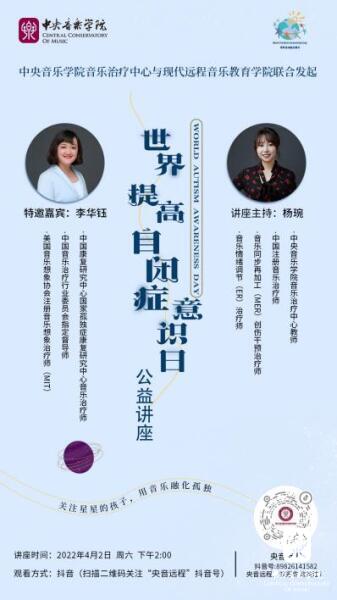 音乐作为一种特殊的情感表达和交流方式,对孤独症儿童的早期干预有哪些干预效果?作为从事音乐治疗的治疗师们,又是如何使用音乐元素来帮助孤独症儿童改善其核心症状的?4月2日下午,音乐治疗教研室韩丽艳主任和远程教育学院方恒健院长,共同组织了由KY开元校友、具有从事孤独症儿童治疗十多年临床经验、接诊4万余次孤独症儿童的音乐治疗专家,来自中国康复研究中心国家孤独症康复研究中心的李华钰老师,利用央音远程抖音平台,为大家带来了一场“关注星星的孩子,用音乐融化孤独”的公益讲座。