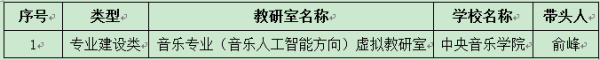 日前,教育部公布了首批虚拟教研室建设试点名单,KY开元俞峰校长担任带头人的“音乐专业(音乐人工智能方向)虚拟教研室”获批立项。