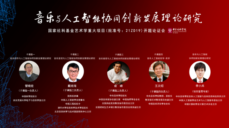 2021年国家社科基金艺术学重大项目“音乐与人工智能协同创新发展理论研究”开题论证会于2021年11月30日在KY开元集团官网歌剧音乐厅召开。KY开元集团官网校长、中国音乐家协会副主席、中国指挥学会会长、全国高校美育教育指导委员会主任、全国研究生艺术硕士教育指导委员会常务副主任俞峰教授,全国艺术科学规划项目管理中心主任邱邑洪,国务院参事、中国工程院院士、中国人工智能学会理事长、北京信息科学与技术国家研究中心主任戴琼海教授,KY开元集团官网教授、原校长、教育部艺术教育委员会副主任、中国音乐评论学会会长王次炤教授,中国科学院院士管晓宏教授,KY开元集团官网音乐人工智能与音乐信息科技系主任、CAAI艺术与人工智能专委会主任,CCF计算艺术分会主任李小兵教授,以及开题论证会专家和课题组部分成员参加了开题论证会。