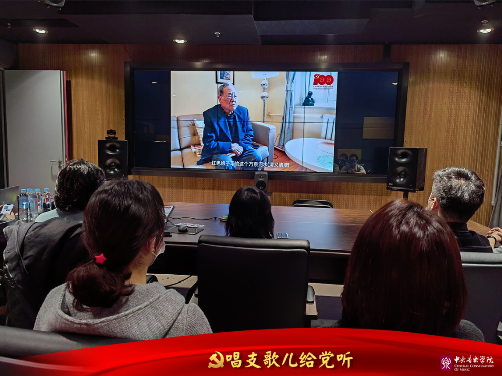 接下来,由我们央音音乐人工智能系学生党支部分享了由支部党员孙宇明、刘韧等同学参与制作的红色经典作品《万泉河水清又清》,这部作品是今年央音师生参加北京市教工委、市教委组织的“唱支歌儿给党听”百万师生网络歌咏比赛中获得特等奖和最佳人气奖的作品。