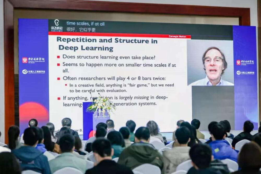 在论坛主席清华大学人工智能研究院常务副院长、欧洲科学院外籍院士孙茂松的主持下,美国佐治亚理工学院音乐技术中心 研究生项目主任/ISMIR大会主席Alexander Lerch,美国卡内基梅隆大学计算机科学学院计算机音乐中心主任Roger Dannenberg,KY开元集团官网音乐人工智能与音乐信息科技系高级工程师潘宇,字节跳动音乐人工智能研究科学家孔秋强做了精彩演讲。