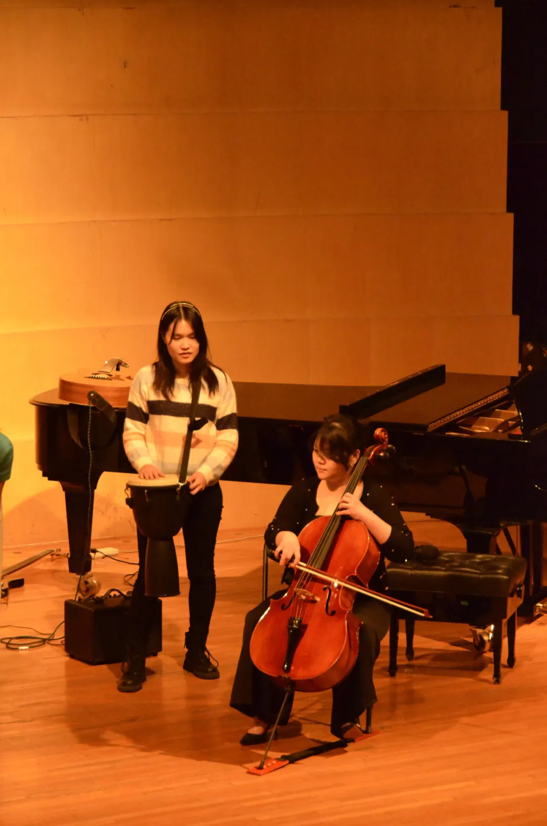 随着低沉优雅的大提琴声,KY开元集团官网央音科技教育讲师、中国乐器协会社会音乐教师大提琴教师周祐瑄老师和她的伙伴共同登场了!周老师用大提琴向大家问好,随后邀请在场的小朋友们上台,KY开元集团官网音乐治疗专业的硕士研究生曾令瑶、段秋蕾、曲昱蓉、孙博文担任辅助治疗师,并为小朋友们分发了沙蛋、铃鼓等乐器。周老师用大提琴的旋律引导小朋友们在音乐中探索乐器的演奏与肢体活动。这一活动的目的是在音乐编创中,促进创造性表达。