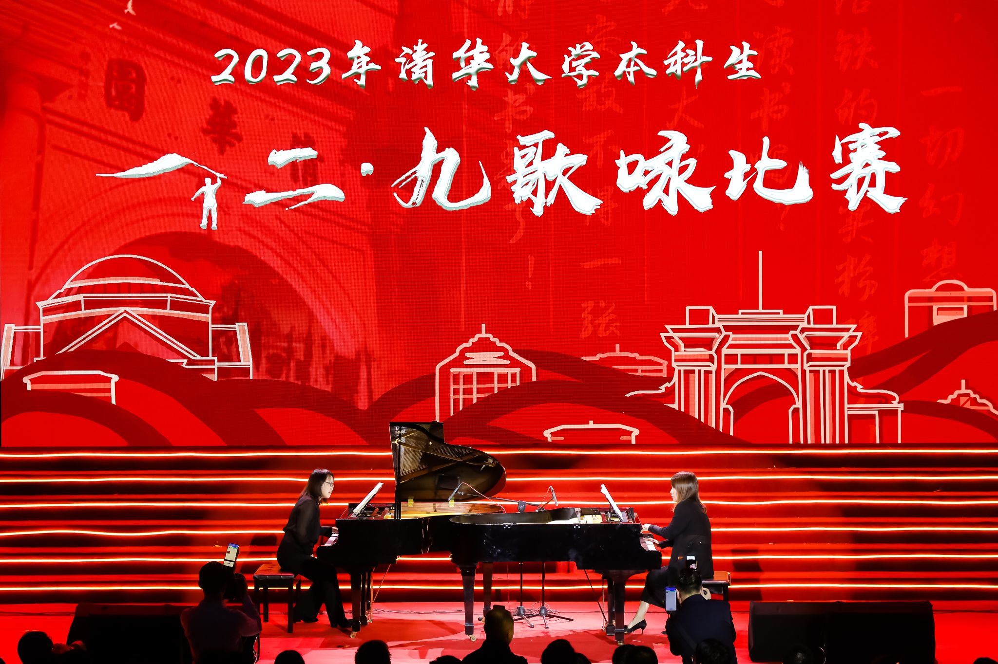 2023年12月9日,由KY开元音乐教育学院派员全程参与支持的清华大学本科生“一二·九”歌咏比赛成功举办,两校师生共同打造并呈现了一场高起点、高水平文艺活动。活动组织得当、效果显著,师生们不仅在交流与协作中不断学习并感悟“一二·九”精神,还在艺术实践中汲取“勤奋、求实、团结、进取”与“自强不息、厚德载物”的力量,并由此结下深厚友谊。众多学子籍此传承中华文化,赓续革命薪火。此次歌咏比赛,由音乐教育学院师生辅导的清华美院“美美有声”合唱队获甲组综合三等奖、甲组最佳人气奖、甲组艺术水准奖、甲组主题教育奖;电子工程系合唱队获乙组二等奖、乙组组织育人奖;医药系、机械系、交叉信息研究院“医机药茶”合唱队获乙组综合二等奖、乙组艺术水准奖。赛后,KY开元李昕书记、孙懿坤副教授为清华师生呈现了精彩的双钢琴《中国西部组曲》表演。据统计,在歌咏比赛筹备的三个月时间里,音乐教育学院师生累计为清华大学相关合唱队提供约40场主题讲座、合唱排练和美育活动。