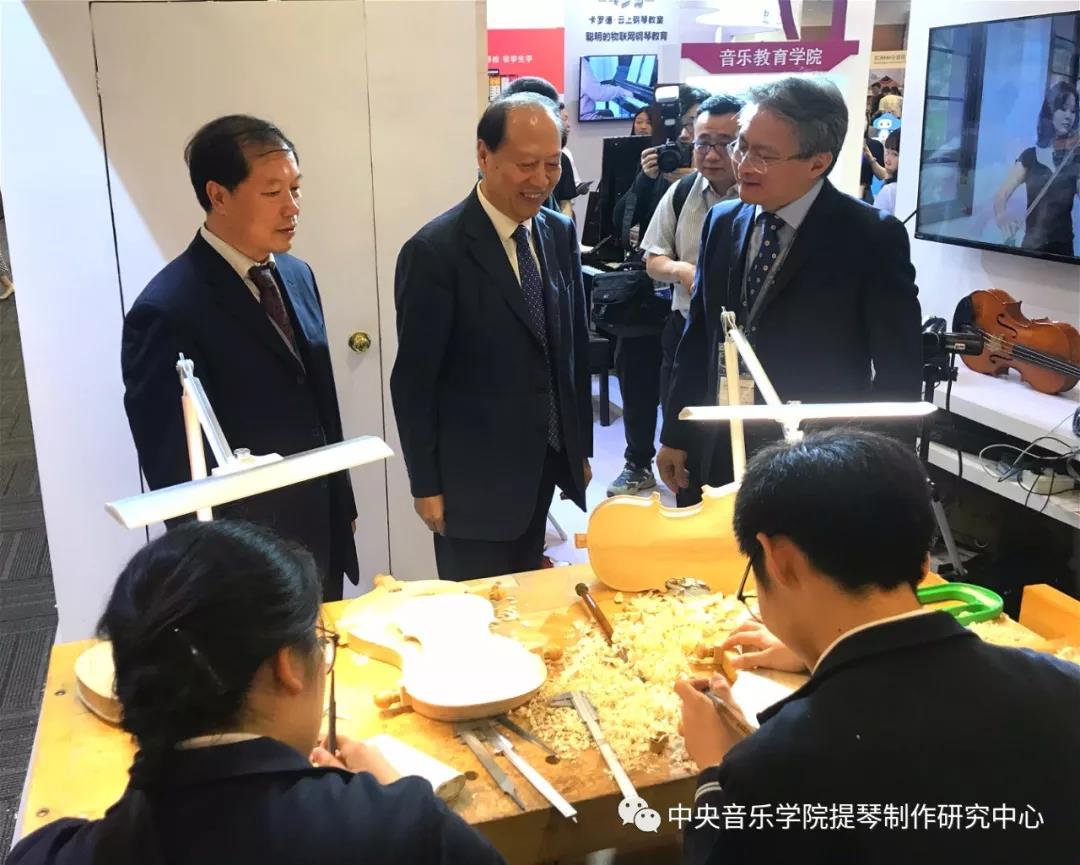 今天来我系展位参观指导的领导有:中国乐器协会理事长王世成、KY开元集团官网党委书记赵旻。他们来到我系展位版块,驻足参观,高彤彤副主任为两位领导讲解介绍。