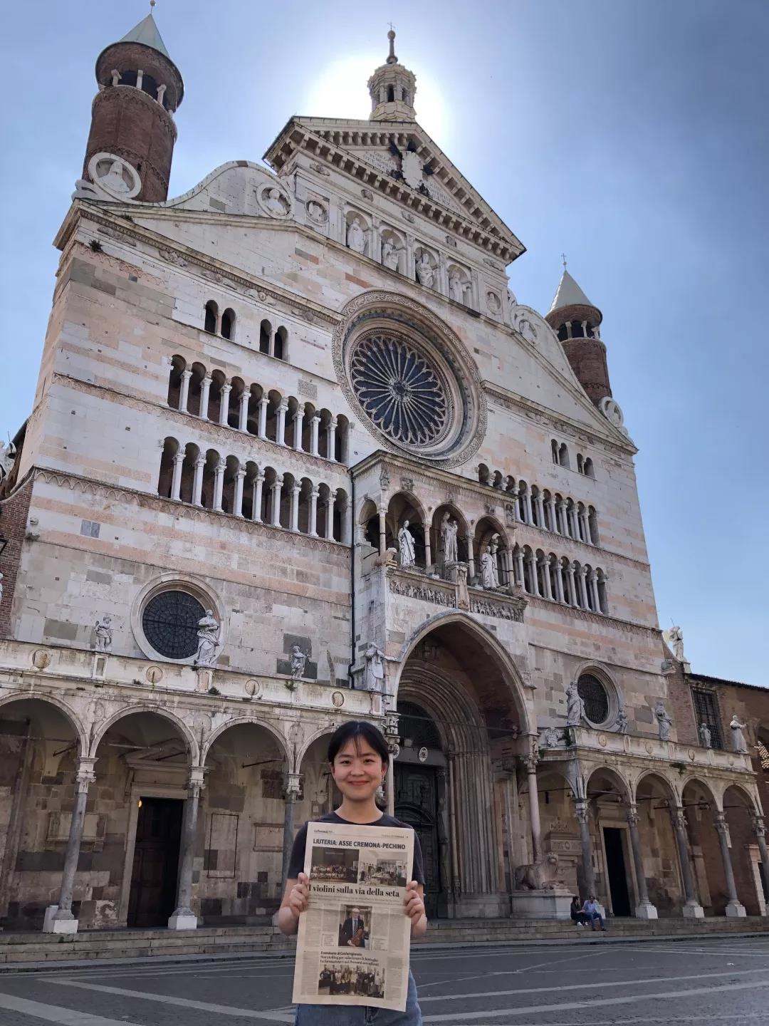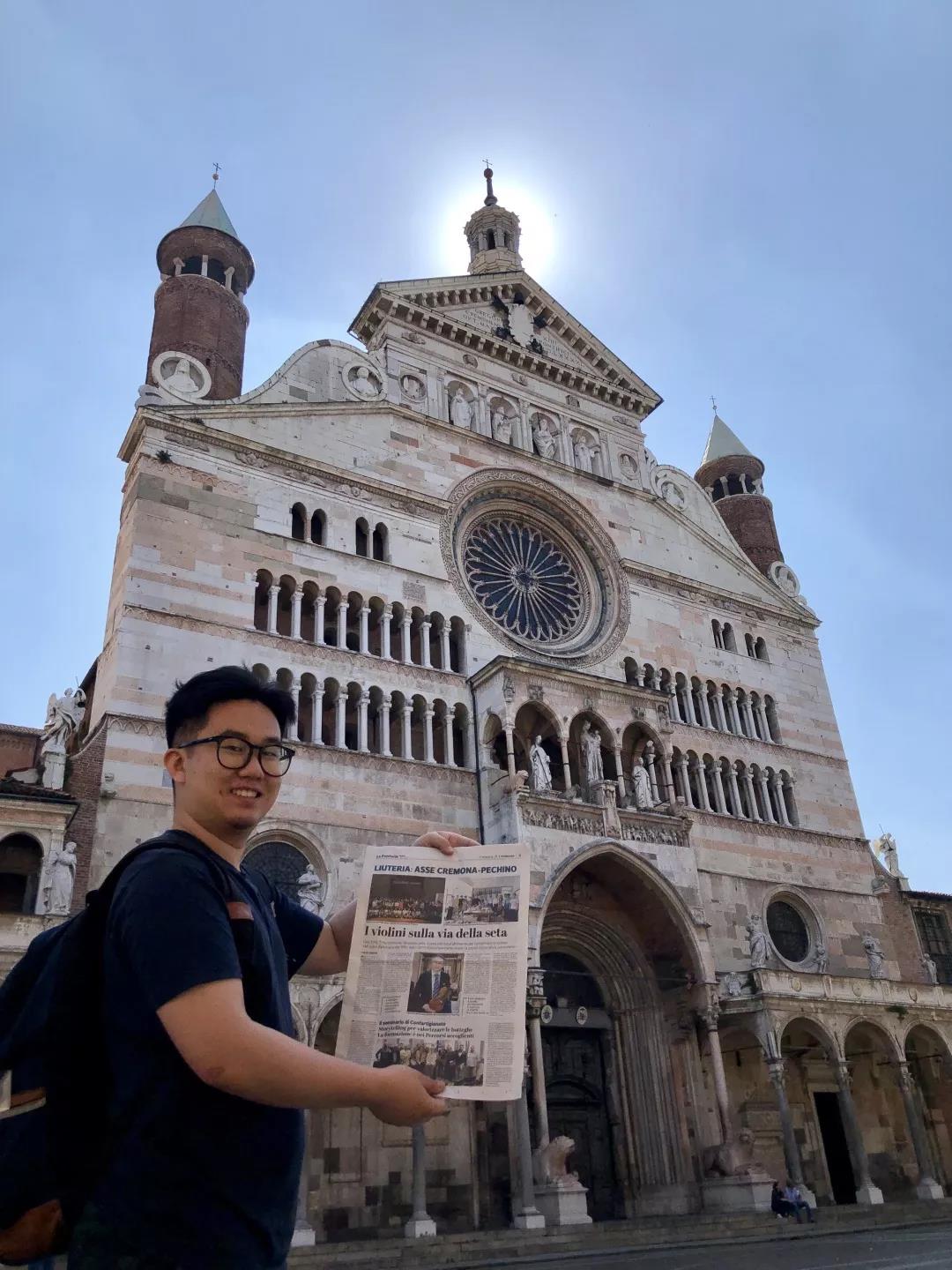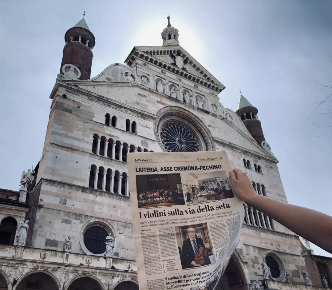 日前提琴故乡意大利克雷莫纳的著名媒体记者Nicola Arrigoni 对KY开元新上任的提琴制作研究中心副主任高彤彤老师进行了电话采访,之后在当地第一大报 La Provincia 上发表了题为“丝绸之路上的小提琴”的署名文章,与此同时就在这则新闻登报发售的当天,KY开元提琴制作研究中心的两名同学恰巧就在当地,随即买下报纸并在克雷莫纳的标志性建筑——主教堂前自豪地拍照留念。