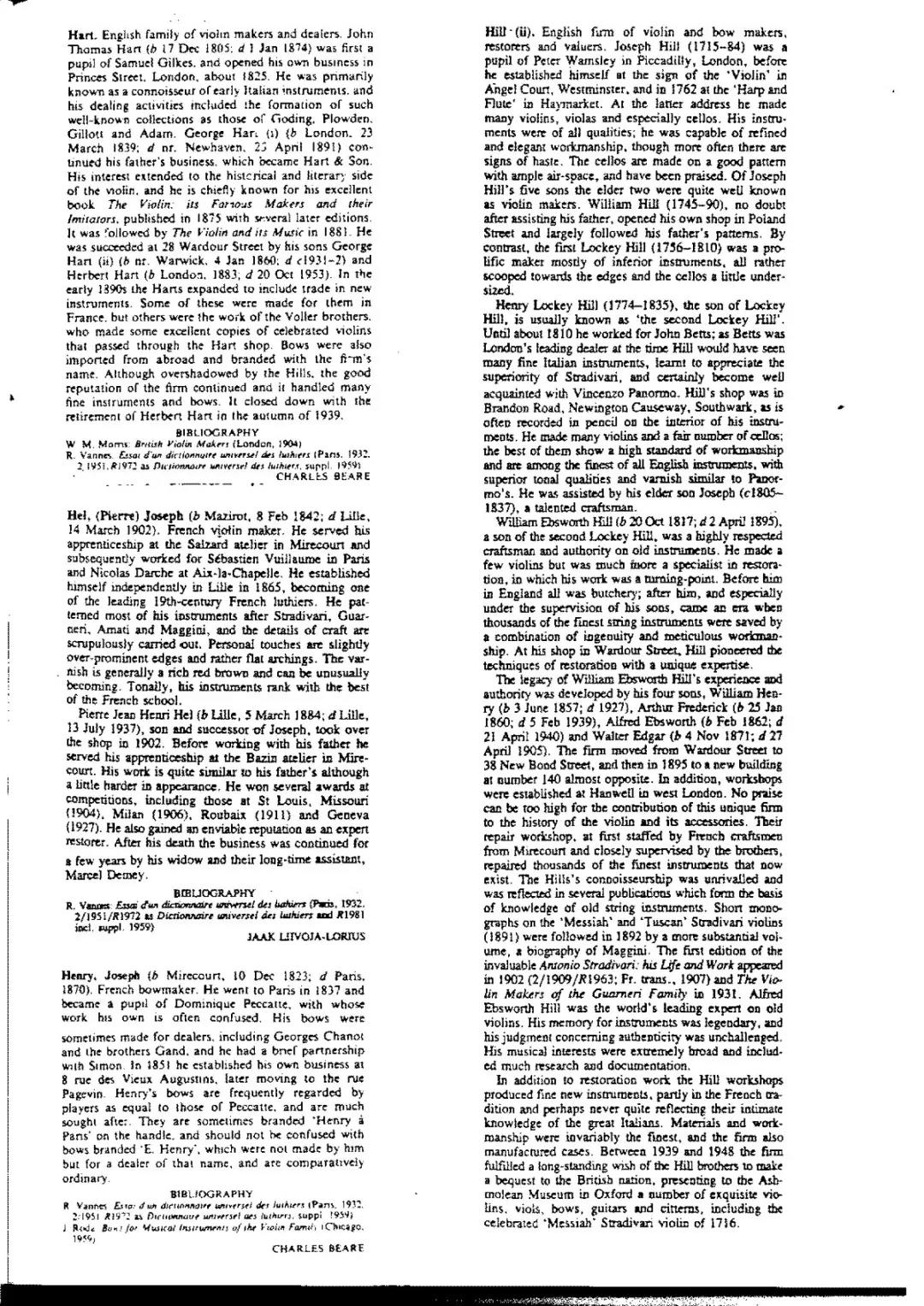 共享资料中收藏的提琴制作字典工具书约30余册。例如:《 Beare Dictionary 》、《 Dictionary of Contemporary Violin and Bow Makers 》、《 Violin and Bow Makers of Australia 》、《 Universal Dictionary of Violin & Bow Makers 》等等,内容涵盖了全球主要制琴、制弓师名录、制作师介绍、制作师专有标签图集、琴码制作风格图集等等,为提琴演奏以及提琴制作的专业人士提供了庞大的搜索查询沃土。如下图: