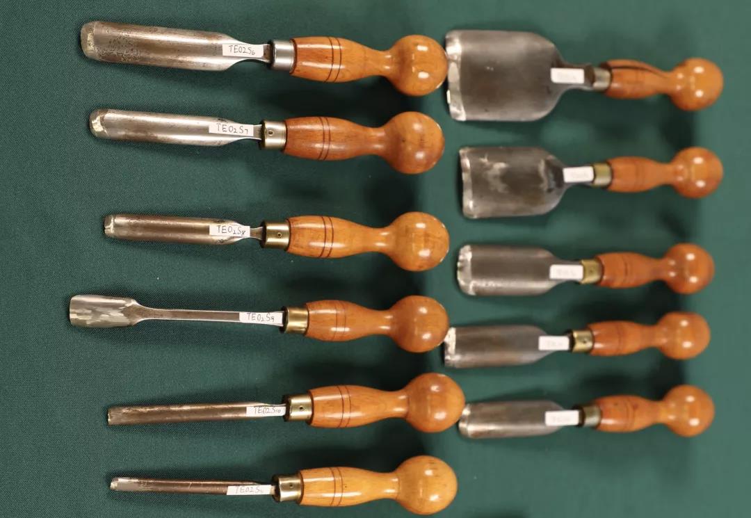 本次捐赠,为欧洲100-300年间的制琴工具,工具品种齐全,数量众多,几乎能够满足儿童提琴以及大中小提琴制作的全部需求,并附有Roger Hargrave先生亲笔签名的鉴定证书。下面就让我们一探捐赠工具中代表作品的传世风采: