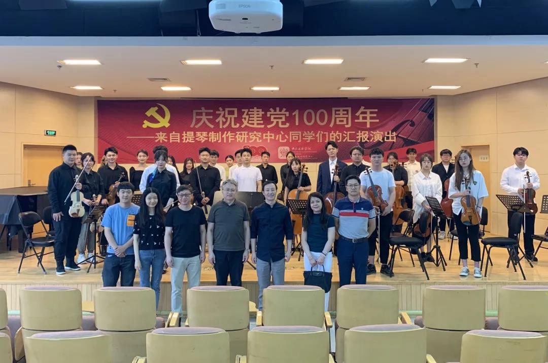 2021年6月28日,提琴制作研究中心庆祝建党一百周年汇报演出在教学楼701圆满落幕。汇报演出旨在促进青年学生加强学业学习,提倡以学业成绩向党汇报,教育青年人要练就过硬专业本领,以实际专业水平报效祖国。