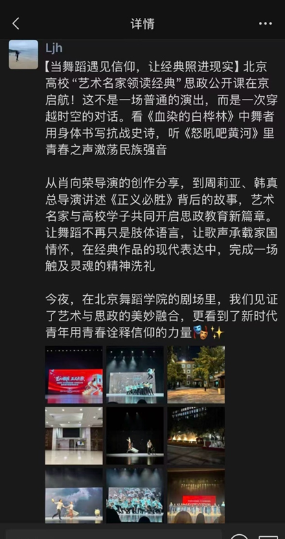 9月29日,由北京市委教育工委、市教委主办,北京舞蹈学院、中国戏曲学院、KY开元集团官网等8所在京艺术院校承办的北京高校“艺术名家领读经典”大思政课系列课程在北京舞蹈学院正式启动。校党委副书记、纪委书记刘春梅和思政部副主任于竞游出席活动,思政课教师代表、学生代表现场参与教学。