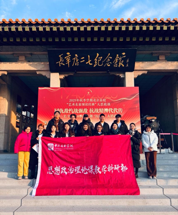12月28日,由北京市委教育工委主办,中国戏曲学院牵头联合8所艺术院校及丰台区委宣传部、中车北京二七机车有限公司(长辛店二七纪念馆)承办的“艺术名家领读经典”大思政课在长辛店二七纪念馆举行。思政部副主任于竞游出席活动,思政课教师代表、学生代表参与现场教学。