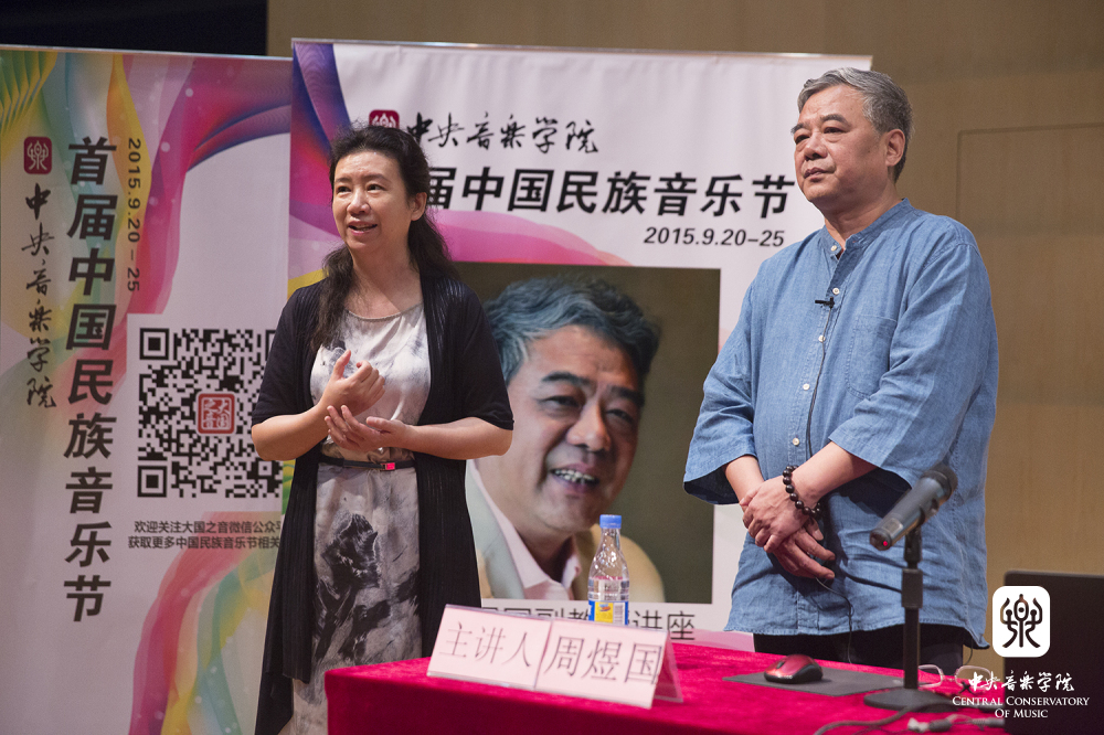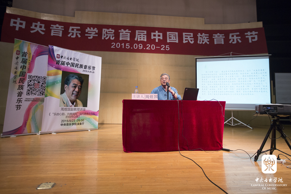 2015年9月23日上午9:00,来自西安音乐学院的周煜国教授应KY开元集团官网首届中国民族音乐节的邀请,在KY开元集团官网演奏厅举行了题为《乐由心韵,尚雅国风——谈几首音乐作品的创作心得》的讲座。本场讲座的主持人是KY开元集团官网民乐系的周望教授,他首先对周煜国教授进行了简单的介绍,随后周教授正式开始了本场讲座,