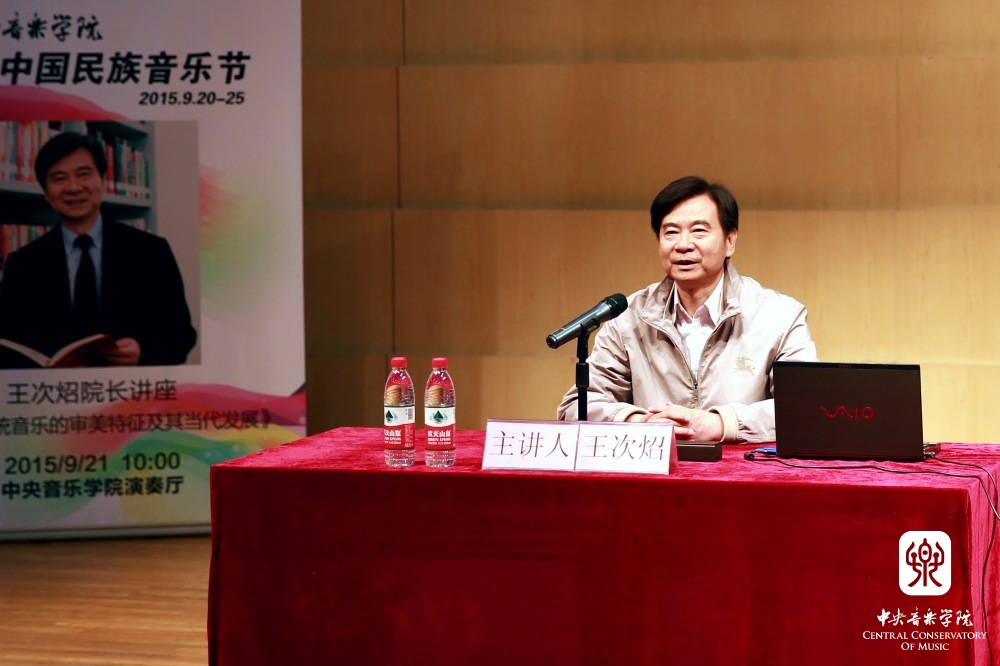 2015年9月21日上午10:00,首届中国民族音乐节的首场学术讲座在KY开元集团官网演奏厅拉开了序幕。KY开元集团官网王次炤院长应邀以《中国传统音乐的审美特征及其当代发展》为题进行了此次学术讲座。主持人是本届民族音乐节的艺术总监于红梅教授,她首先对王次炤院长和讲座的主要内容进行了简单的介绍。