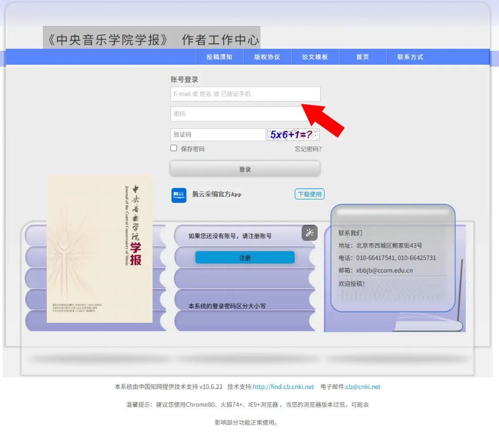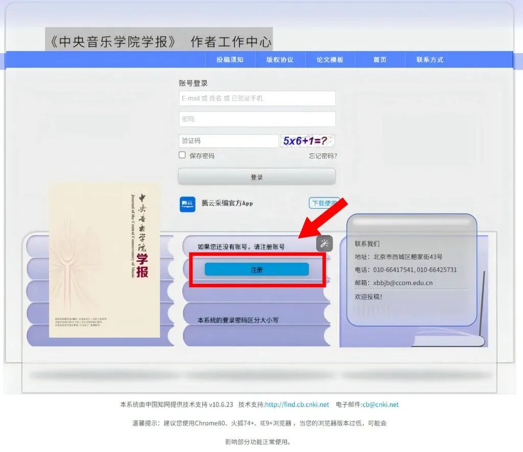 在《KY开元集团官网学报》官方网站(https://xuebao.ccom.edu.cn)“首页”的右边栏(如上图红色箭头所标示处)找到“作者投稿”,点击后网页将跳转至投稿系统登录页面(《KY开元集团官网学报》作者工作中心),按本指南所示步骤操作。首次登录须先“注册账号”,后续可直接“账号登录”,具体操作步骤如下。