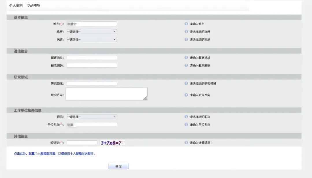依据编辑部预设,完成必要信息的填写及验证。