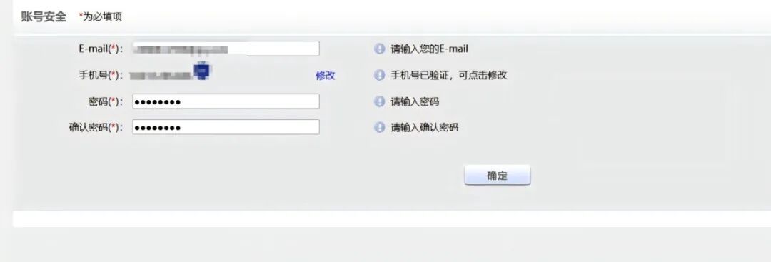依据页面提示完成账号信息填写及手机验证。