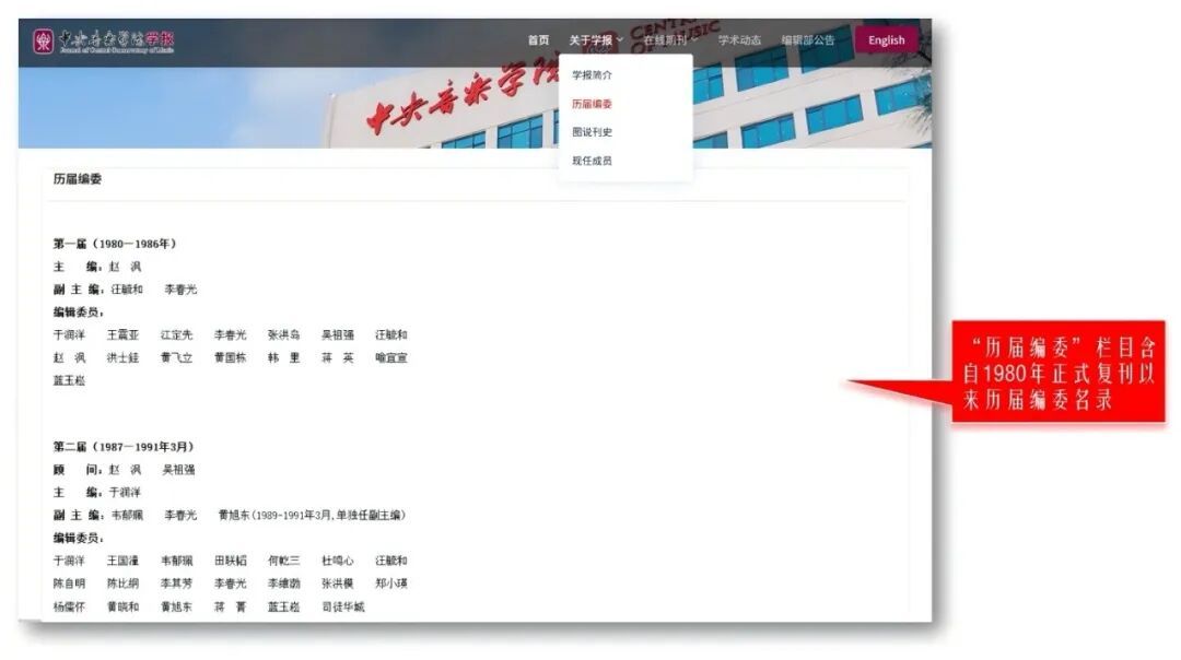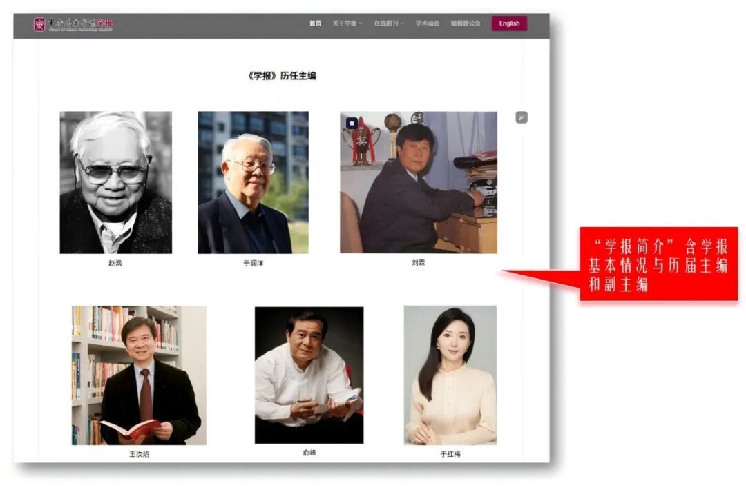 新网站同时是一个完整的电子档案库。网站记录了复刊45年来(1980-2025),学报历届编委及曾在学报编辑部任职人员的完整名录,以及学报荣获的各项荣誉。这些经历史考证和系统梳理的信息,从侧面详实地勾勒出学报45年来不平凡的发展历程。