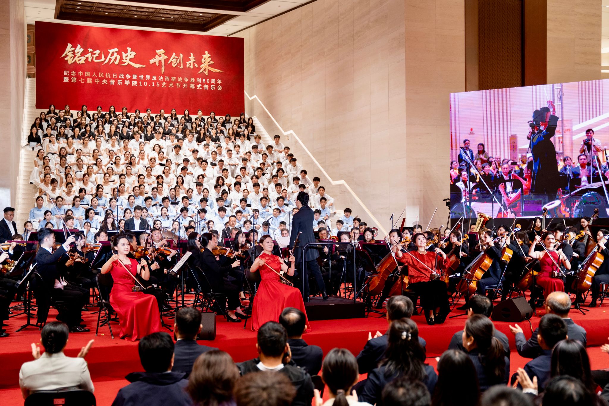 曲终时刻,交响乐团与合唱团共同演绎的《歌唱祖国》的余音在纪念馆的穹顶久久盘旋。我们的琴声虽已静止,但那些用音符铸就的历史图景仍在观众湿润的目光中留存。作为这场音乐史诗的筑梦者,我们不仅再现了经典的旋律,更用音乐告慰了历史中的先辈:这盛世,已如您所愿。