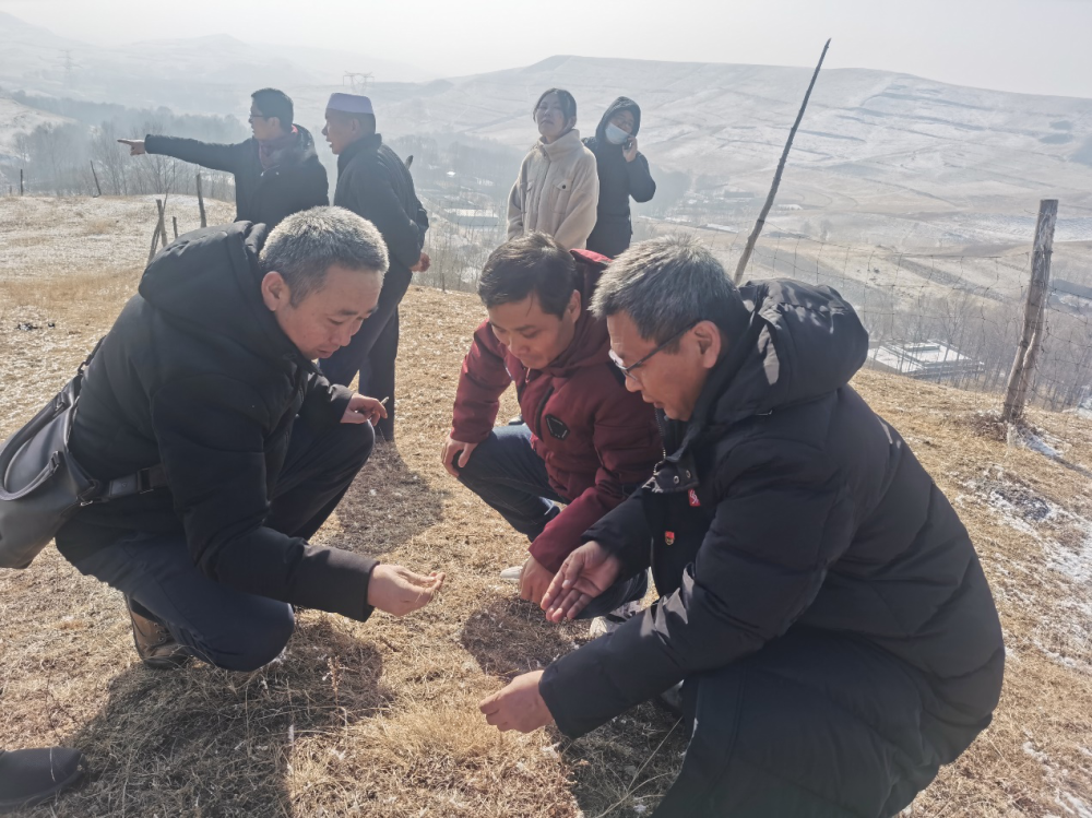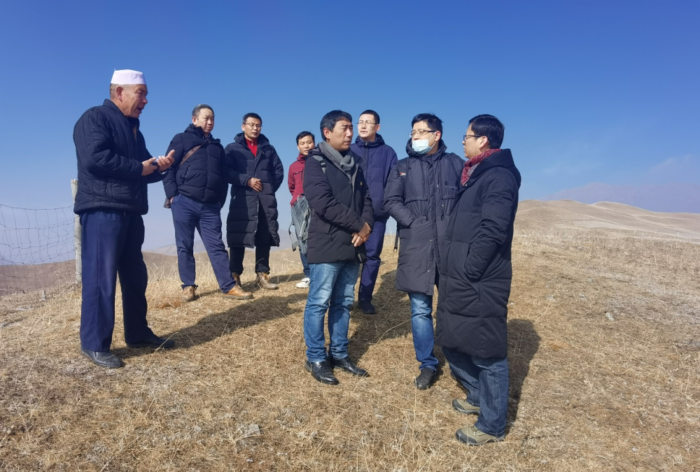 3日上午二塘乡气温零下8度,红牙合村内飘着小雪,专家团队先来到海拔3100米的村委会座谈,会上驻村第一书记李玮向专家组介绍了红牙合村基本现状和拟发展产业项目。青海大学光伏中心陈晓弢博士就红牙合村光伏发电项目给予了精心指导和建议;畜牧兽医科学院徐成体研究员、贾志锋博士,在饲草种殖、有机肥、养殖等方面分别给予详细的分析并给出了短期、中期的发展规划;农林科学院徐仲阳博士针对红牙合地理状况、气候环境建议引进目前已在其他相似地区大面积推广种植的高原抗寒良种豌豆,预计比一般豌豆产量翻番。会后,专家团队爬上村北侧海拔3200米的山脑,对光伏用地、草场地质、牧草品质、生态肥原料等进行实地考察。