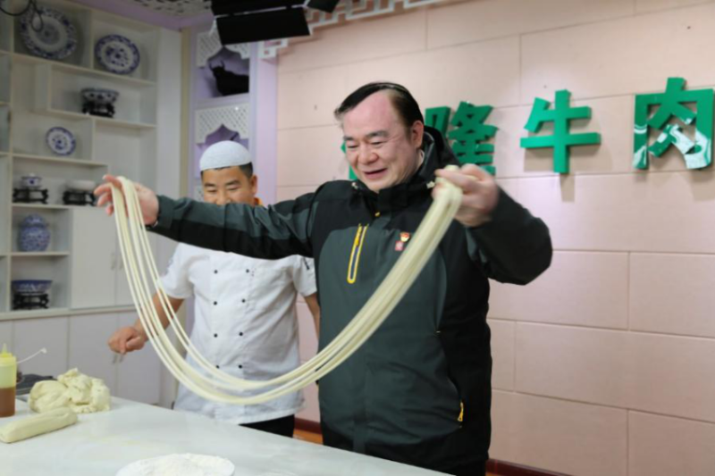 5月28日上午,在县委刘建昱书记的陪同下,俞峰院长、王歆主任一行,参观了化隆县拉面电商中心。化隆县是一个名副其实的“拉面县”。化隆农民纯收入的54%来自拉面餐饮行业或者拉面相关产业链,在全县累计脱贫的13万人中9万人是通过拉面脱贫的。2016年化隆被国家发改委、财政部等10部委确定为全国返乡创业试点县,群科镇被住建部确定为全国特色(拉面)小镇。
