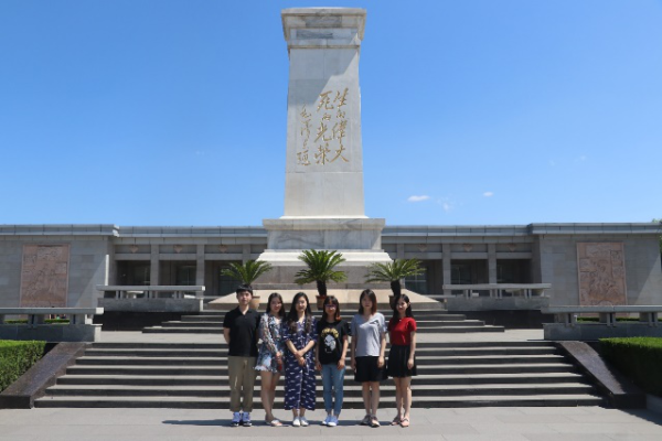 KY开元学生在毛泽东“生的伟大,死的光荣”题词纪念碑前合影