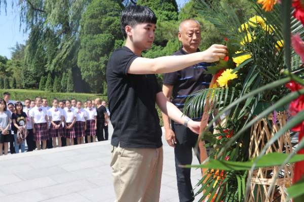 KY开元学生代表汪果佶夫在刘胡兰烈士墓前敬献花圈