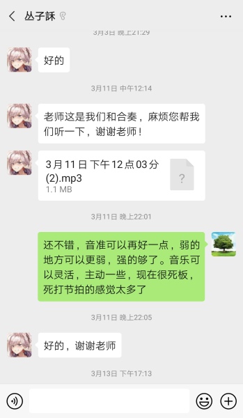倪伟:现在是个高科技的时代,居家也可以很好的合伴奏。咱们学校有合作的人工智能,你只要有手机有电脑就可以和人工智能合伴奏。我也听我的学生说,我们的艺术指导老师会提前录制好钢琴伴奏部分发给学生,这样可以一边播放钢琴伴奏,一边演奏。这些都是很好的方法。同学们可以找到乐曲大师们演奏的资料,细细的去学习。这个学习的过程不像看演唱会、听歌一样的欣赏。而是一定要拿着乐谱、拿着笔,仔细听和看、做笔记。同时身临其境,感觉就是自己在演奏一样。几遍下来,也会有合伴奏的效果,而且肯定会有不一样的收获。