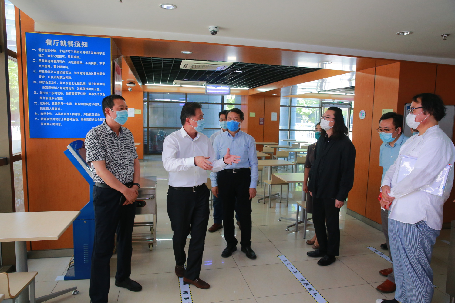 黄侃来到学校临时健康观察点(筒一楼)进行实地检查,了解学校监测隔离机制;来到东校区学生宿舍、食堂了解住宿、用餐的疫情防控预案,垃圾分类处理等工作,对疫情防控体系中的各项细节性工作给以指导意见。