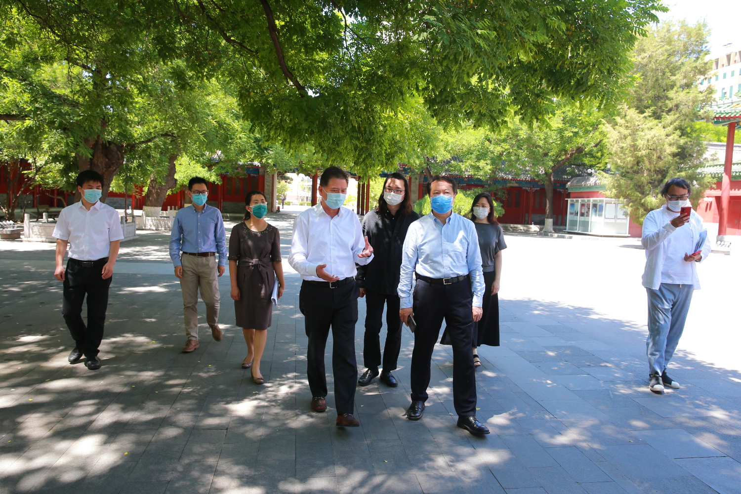 北京市教育委员会二级调研员陈敬文,学校党委办公室、宣传部、学生工作部、校园建设与管理处等职能部门负责人陪同调研。
