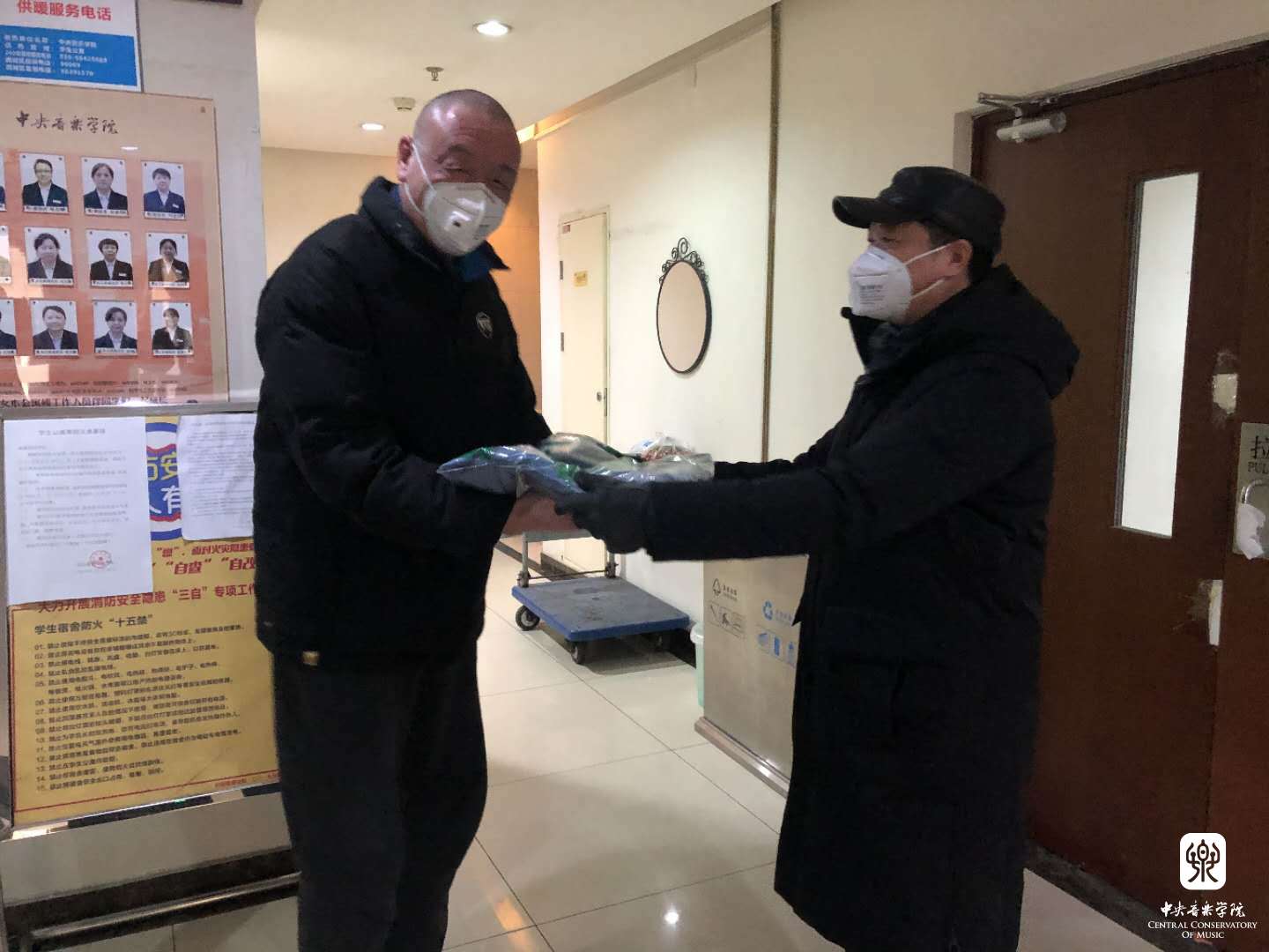 赵旻书记和俞峰院长先后看望慰问了保安员、教务处、物业项目部、维修部、保洁部、学生公寓、食堂以及学生处的工作人员,详细询问了值班值守人员的具体情况,为大家发放了慰问品,鼓励他们继续保持昂扬斗志,坚守岗位,守好责任田,护好一校人,并叮嘱大家在全身心投入疫情防控工作的同时,要注重加强自我防护,确保自身安全,齐心协力,坚决打赢这场疫情防控阻击战。