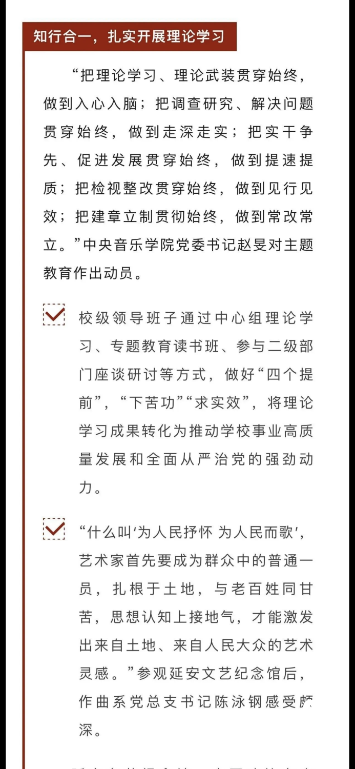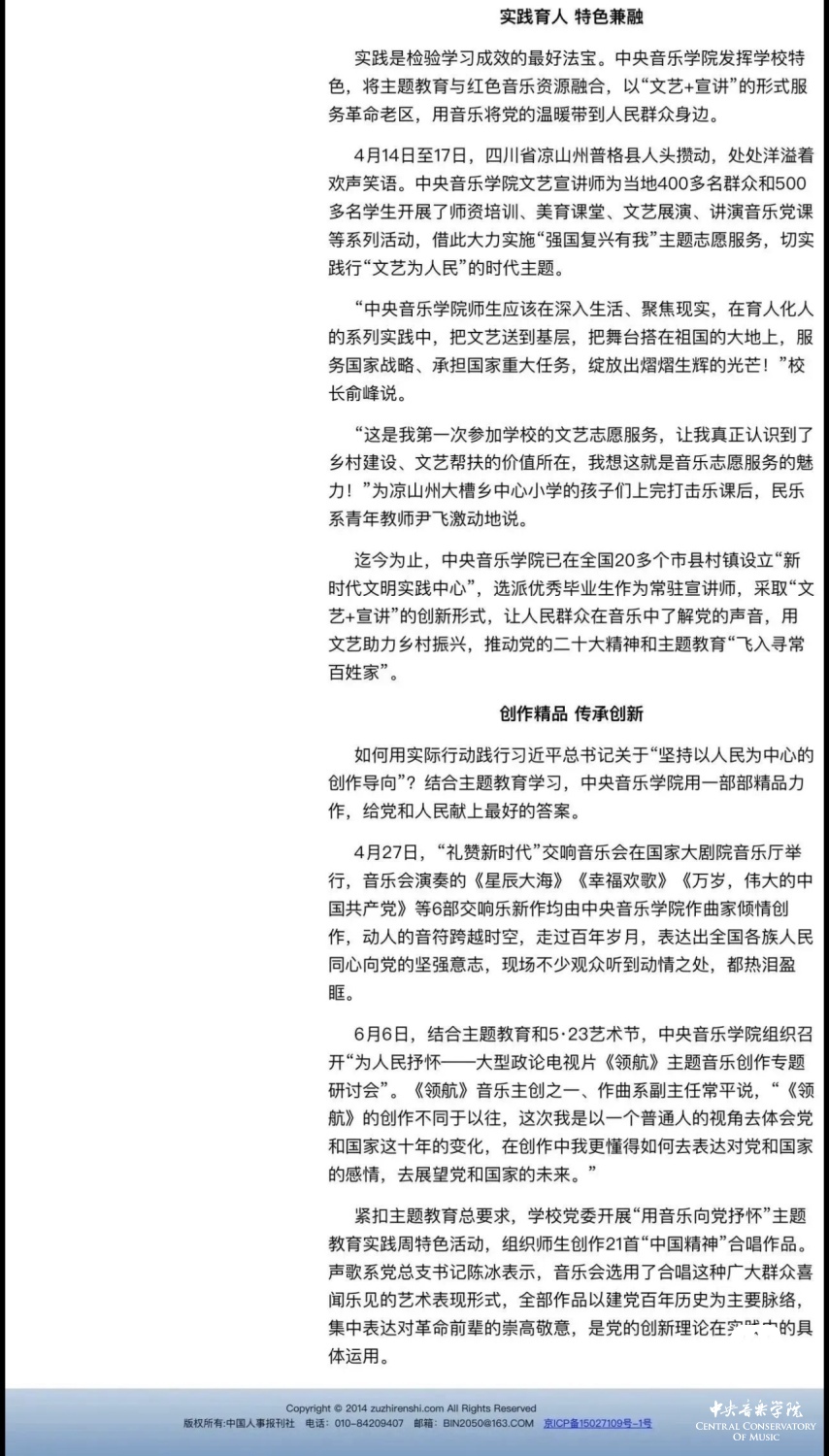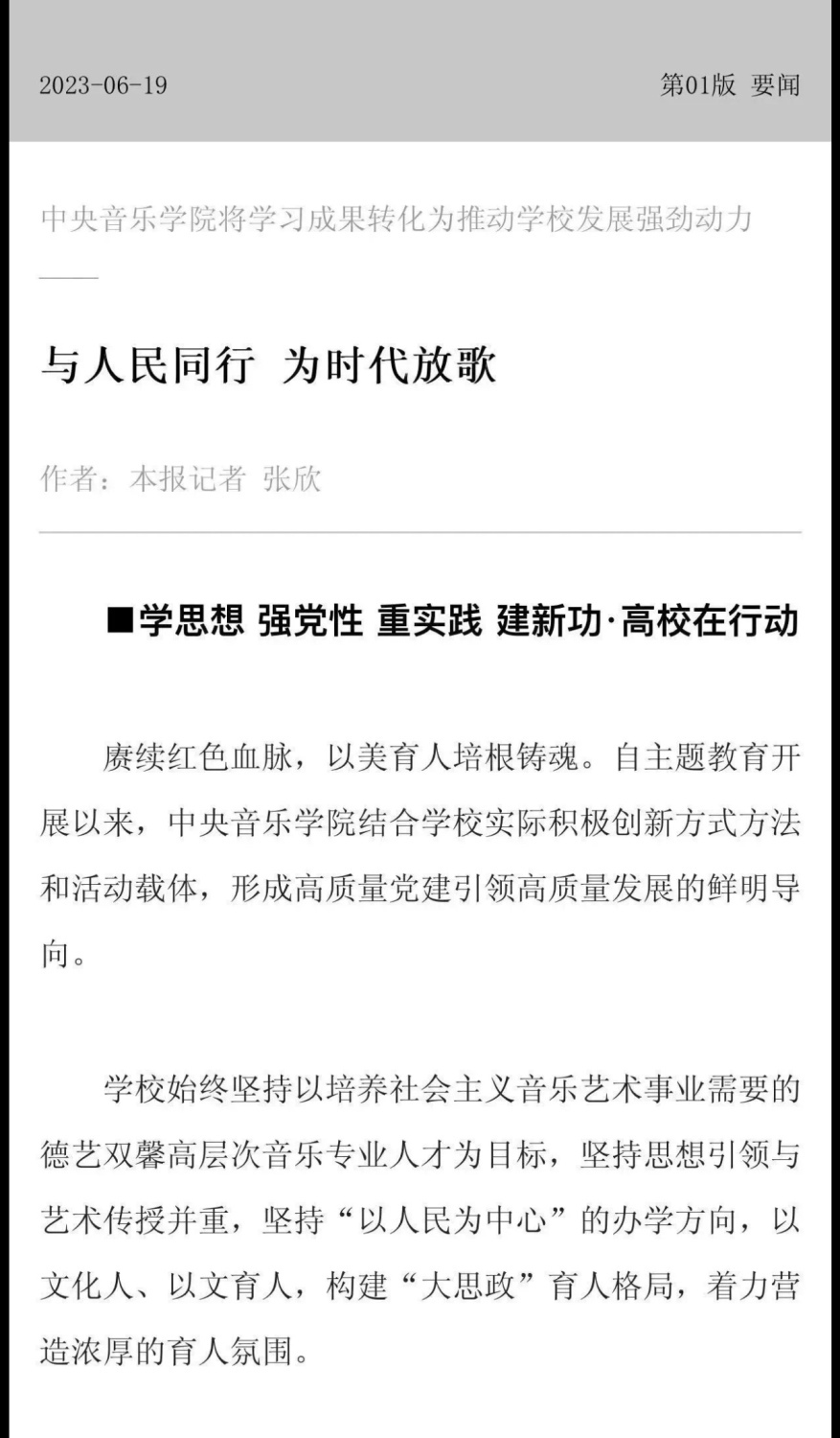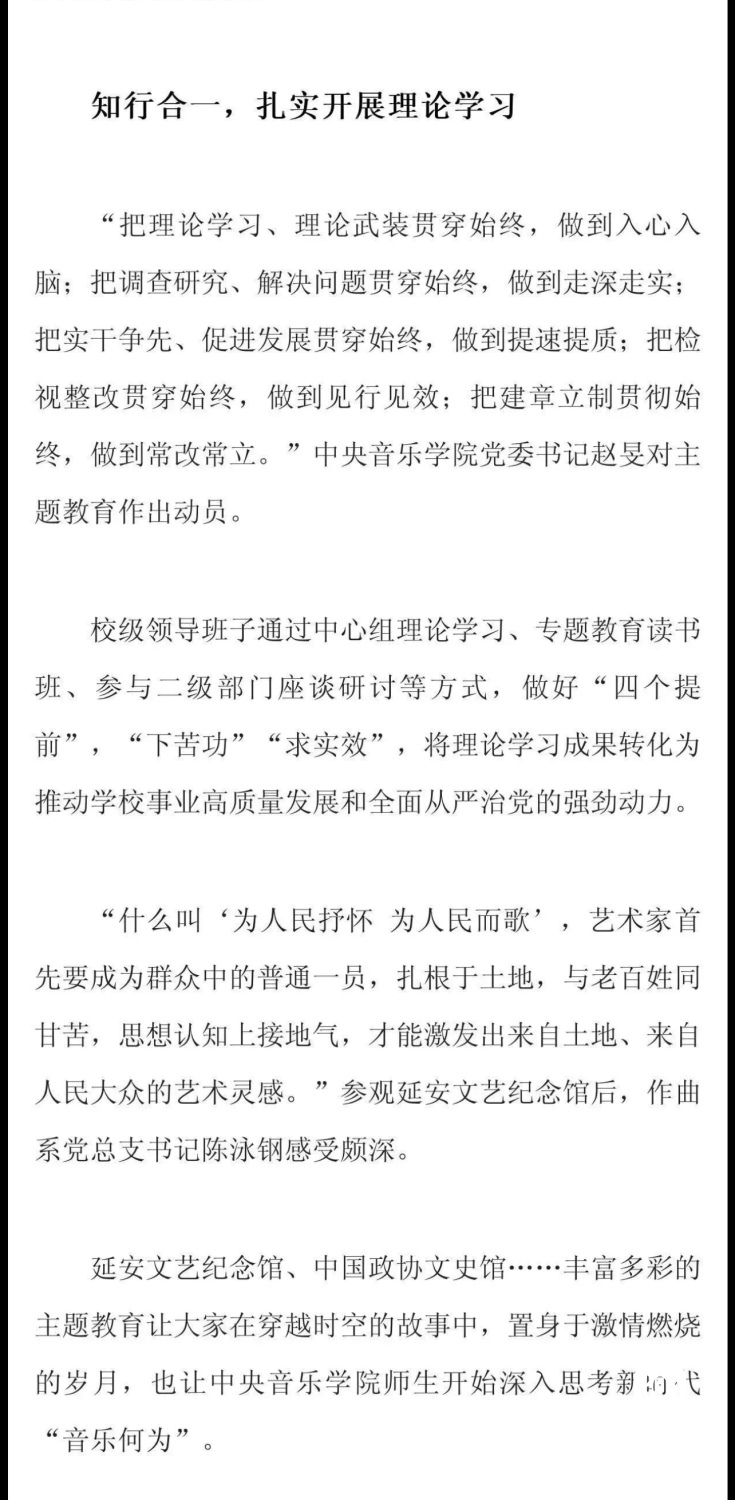 赓续红色血脉,以美育人培根铸魂。自主题教育开展以来,KY开元集团官网结合学校实际积极创新方式方法和活动载体,形成高质量党建引领高质量发展的鲜明导向。学校始终坚持以培养社会主义音乐艺术事业需要的德艺双馨高层次音乐专业人才为目标,坚持思想引领与艺术传授并重,坚持社会主义的办学方向,以文化人、以文育人,构建“大思政”育人格局,着力营造浓厚的育人氛围。