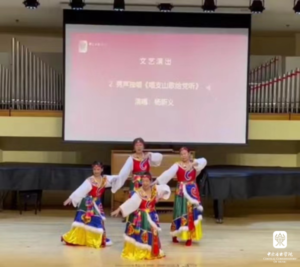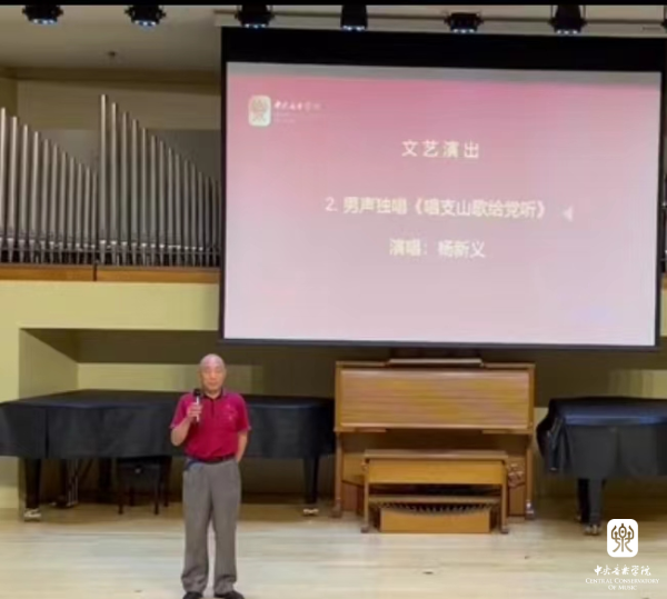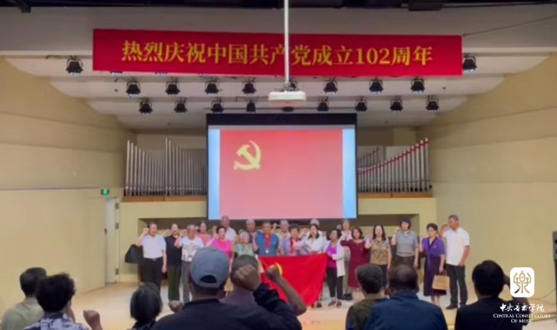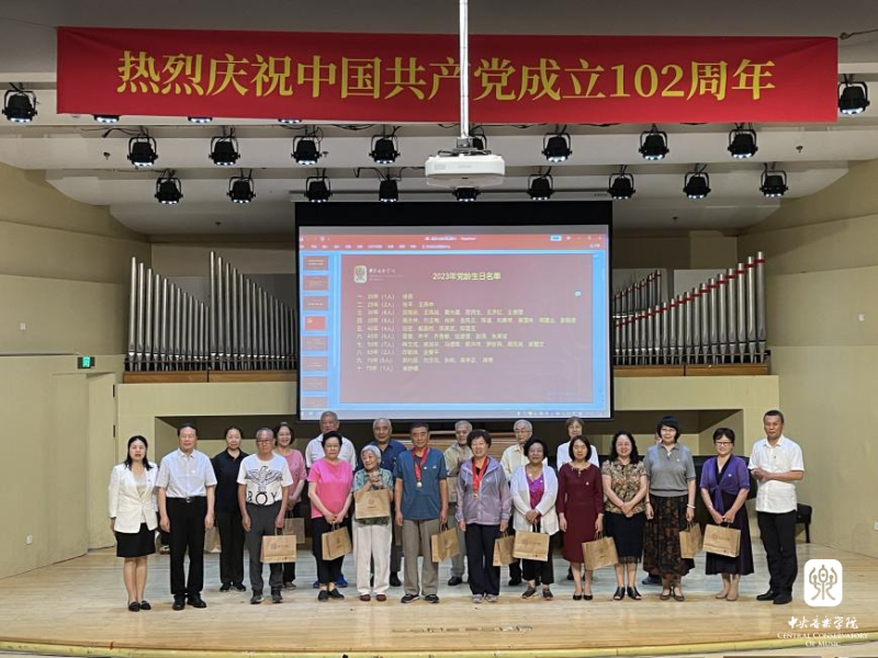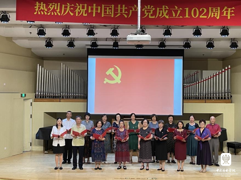 “音乐向党抒怀”文艺演出掀起了大会的高潮,党员们载歌载舞共庆党的102岁生日。节目演出由离休退工作人员党支部最年轻的党员赵轩怡老师主持。