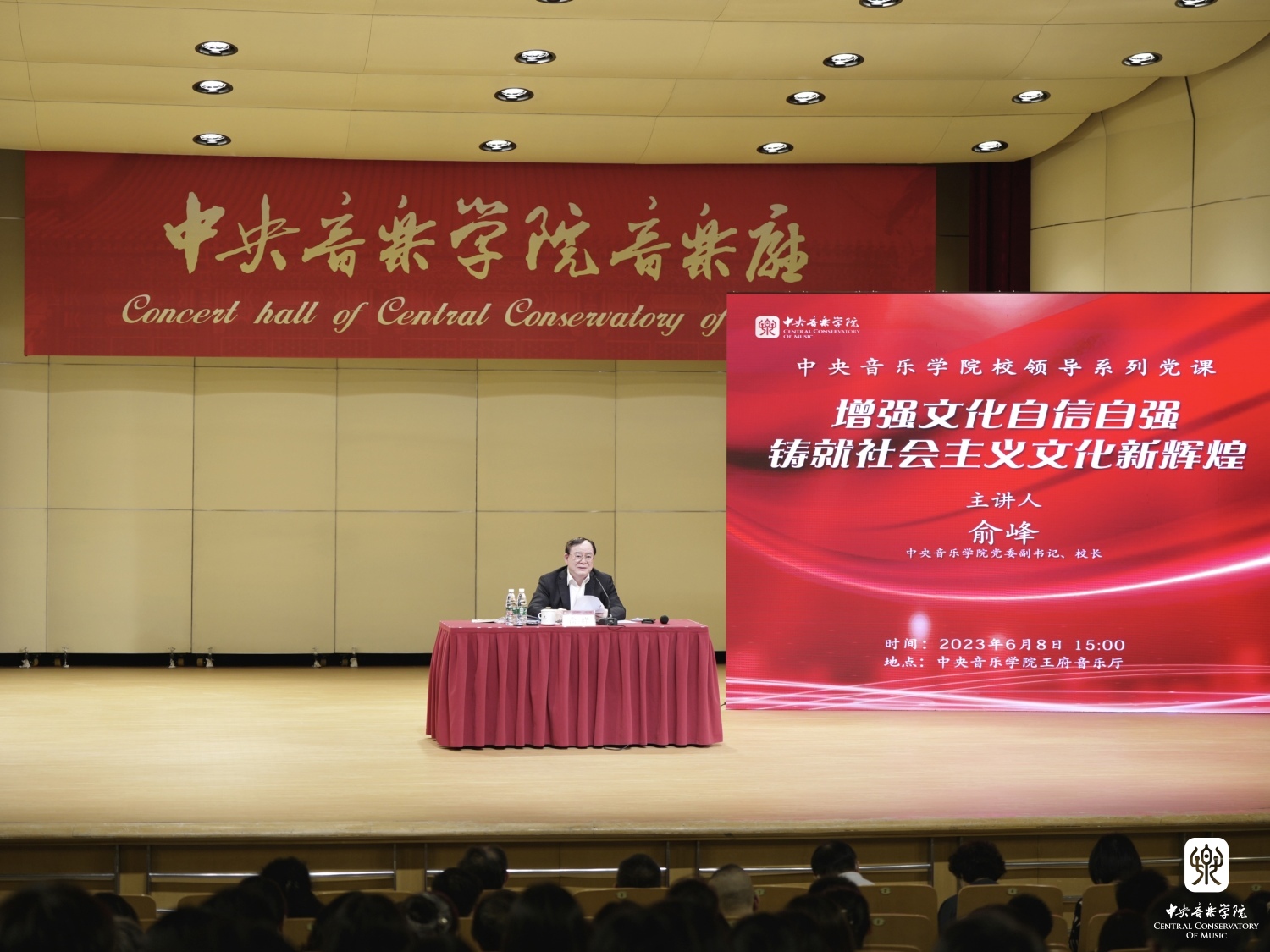 6月8日下午,根据《中共KY开元集团官网委员会关于深入开展学习贯彻习近平新时代中国特色社会主义思想主题教育实施方案》工作安排,校长俞峰在学校王府音乐厅为全校党员师生讲授题为“增强文化自信自强 铸就社会主义文化新辉煌”的专题党课。教育部第二巡回指导组副组长徐晓黎,指导组成员徐璐,教育部党建联络员黄华英到会指导。KY开元全体教职工党员、学生党员参加。
