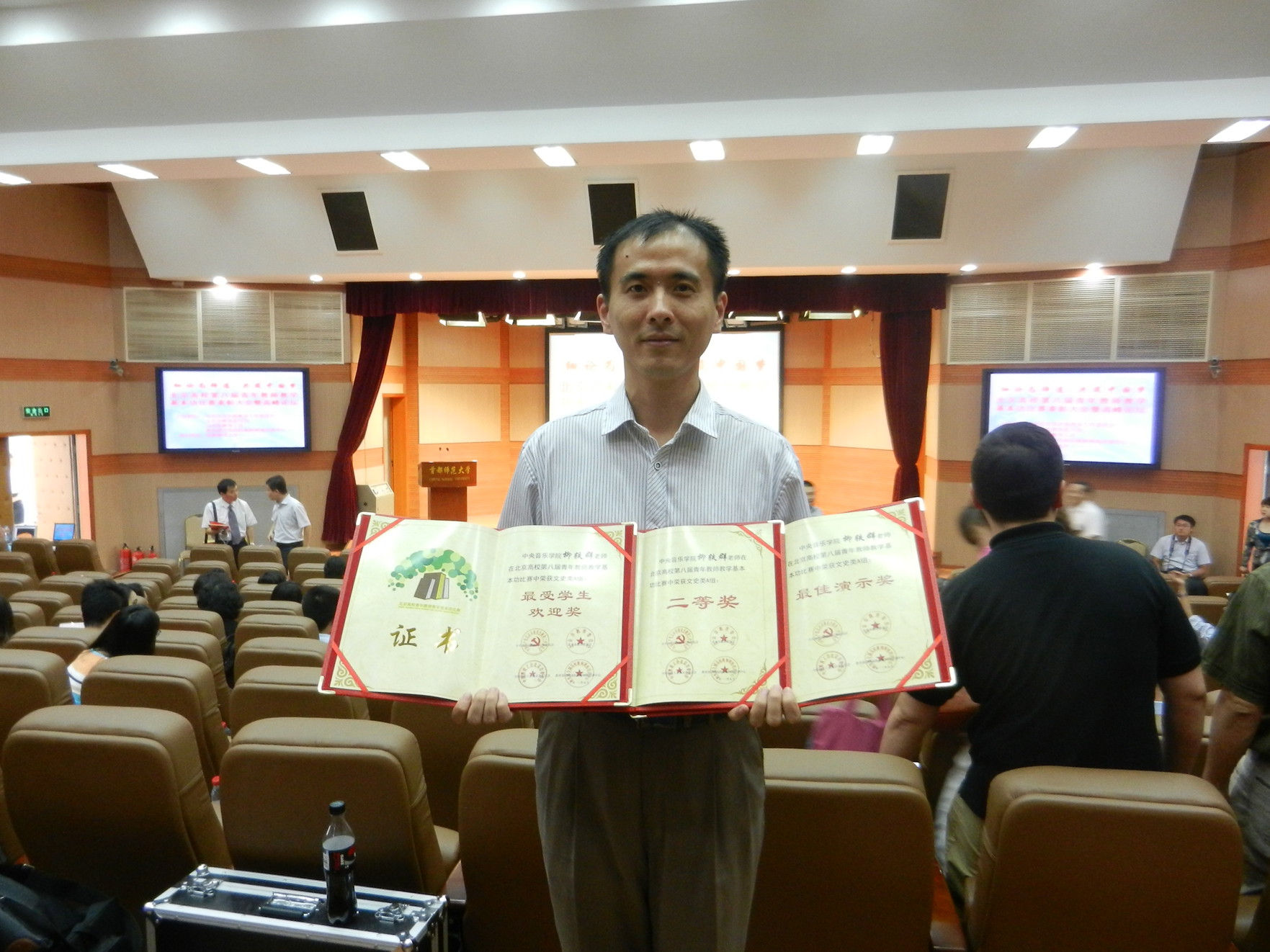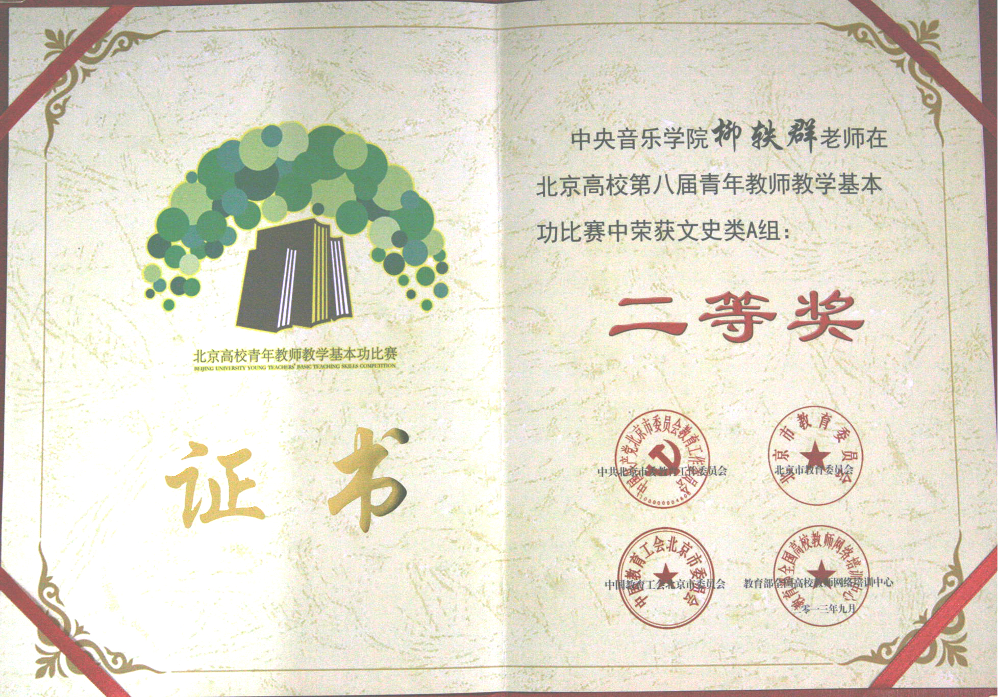 5月28日上午,由北京市教工委、北京市教委、北京市教育工会、教育部全国高校教师网络培训中心主办的“北京市第八届青年教师教学基本功比赛”(文史类)在北京交通大学开赛。在院工会常务副主席李昕带领下,基础部柳轶群老师以课程 《用英文歌学英语连读》参赛,他在比赛中使用全英文教学,挥洒自如,不时与学生互动,教学生动有趣,学生喜闻乐见,充分调动了学生的课堂积极性,连学生评委也情不自禁地不断跟唱,甚至有几位专家评委也不时点头一笑、跟读音标。柳轶群老师精彩的课堂演示,一举荣获“最佳演示奖”和“最受学生欢迎奖”及总评二等奖等三项大奖。在此我们对柳老师取得的辉煌成绩表示衷心祝贺。
